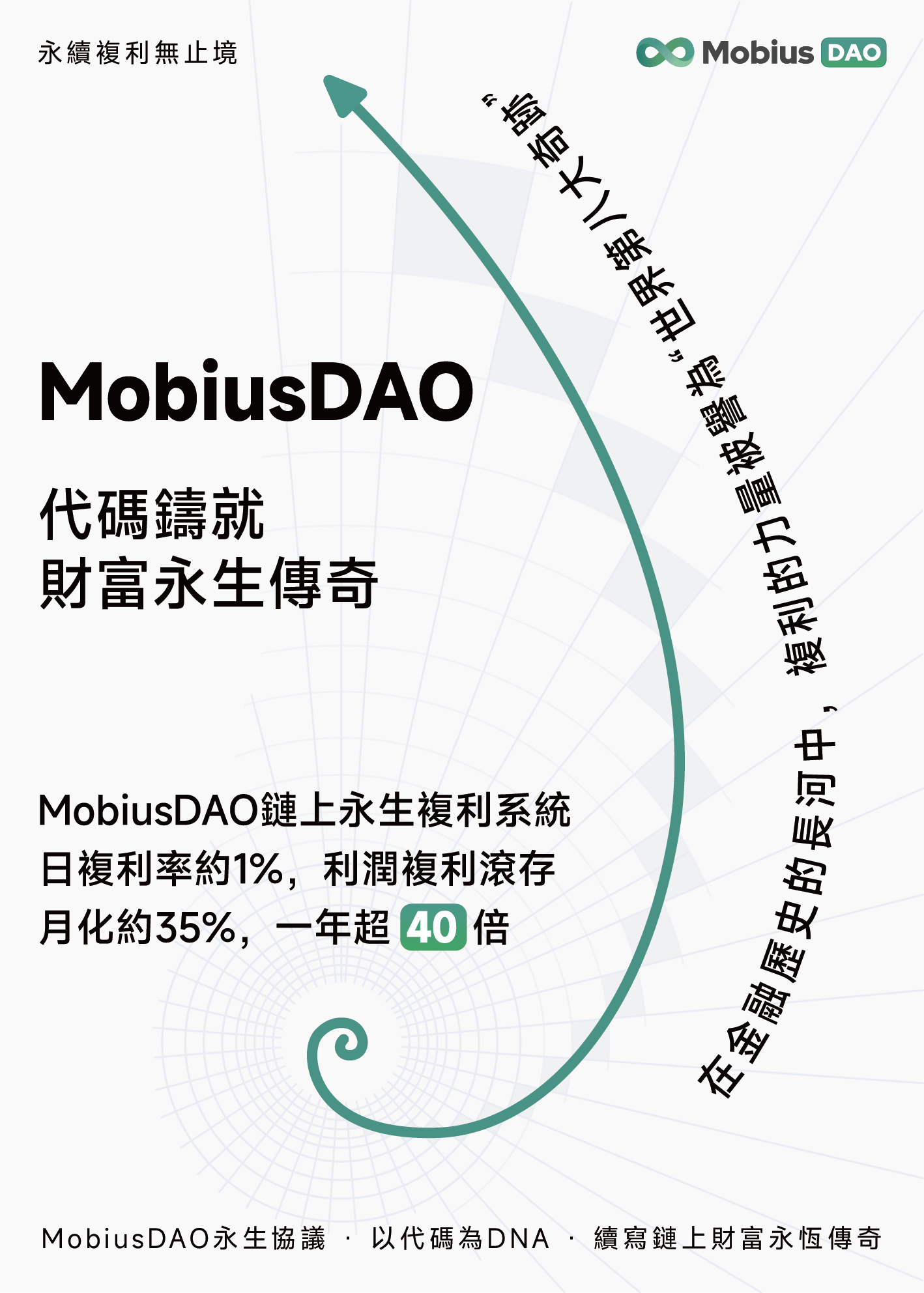 MobiusDAO永生协议以其永续的经济模型、创新的收益机制和稳健的价格保障,开辟了DeFi领域的新疆界。MBU作为未来的“数字黄金”,不仅承载着财富增值的希望,更象征着Web3时代金融自由的无限可能。无论是追求复利稳健增长的个体投资者,还是渴望团队协作红利的社区领袖,MobiusDAO都为您铺设了通往财富彼岸的坦途。现在,就让我们携手加入这场数字金融的伟大航程,通过参与预先期货抢占先机,共同见证MobiusDAO的永恒传奇!