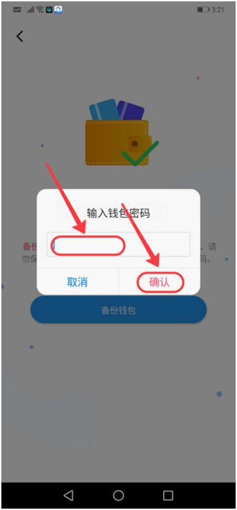 第六步、输入前面设置的钱包密码,点击“确认”,如下图: