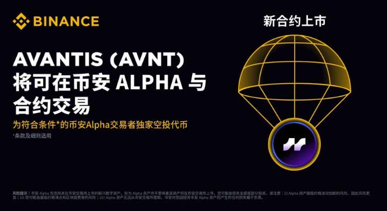 Avantis代币(AVNT)将在Binance等平台上线——全球最大CEX遇见DeFi最大RWA衍生品交易平台